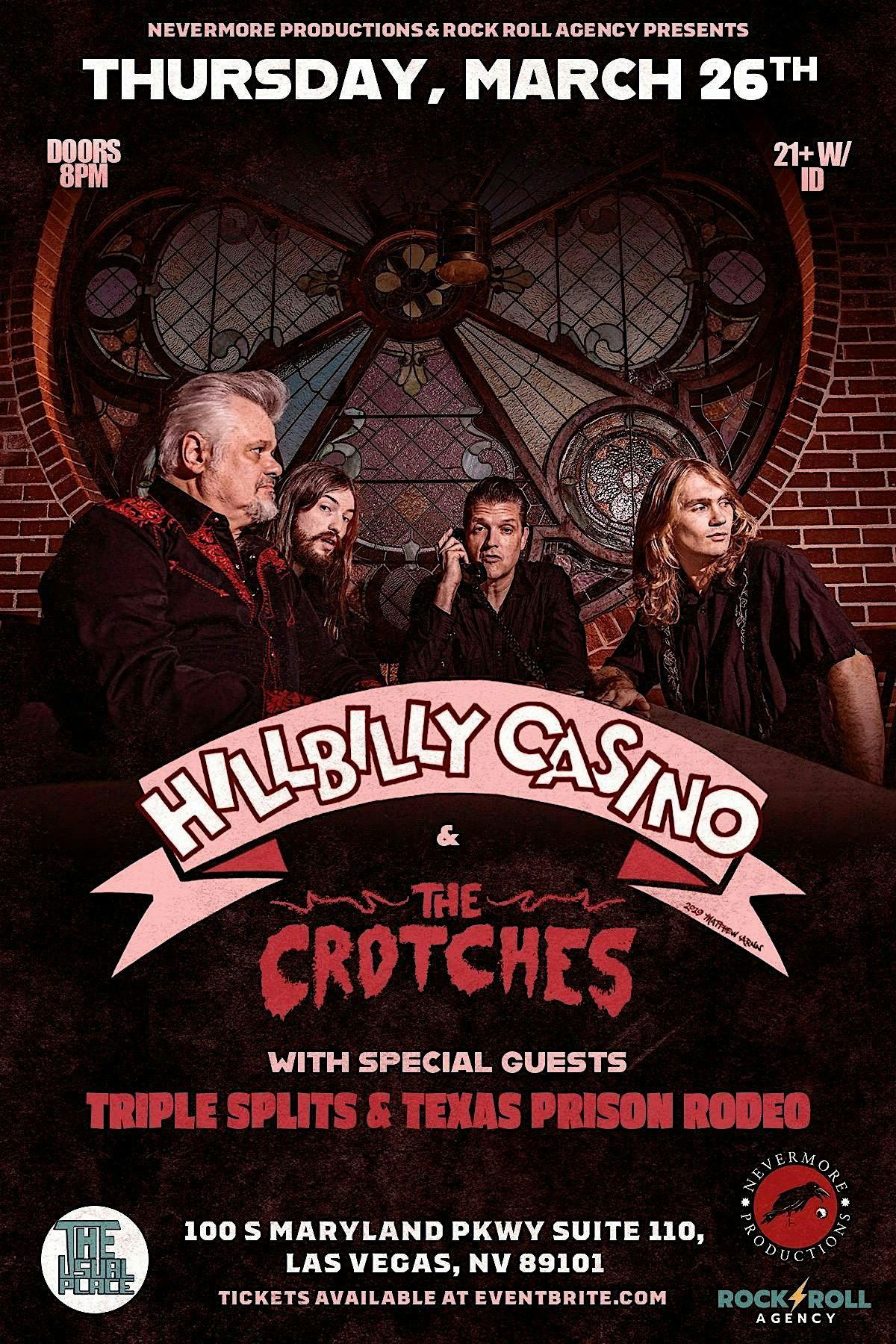 On Thursday, March 26th, Nevermore Productions and Rock Roll Agency presents Hillbilly Casino and the Crotches!