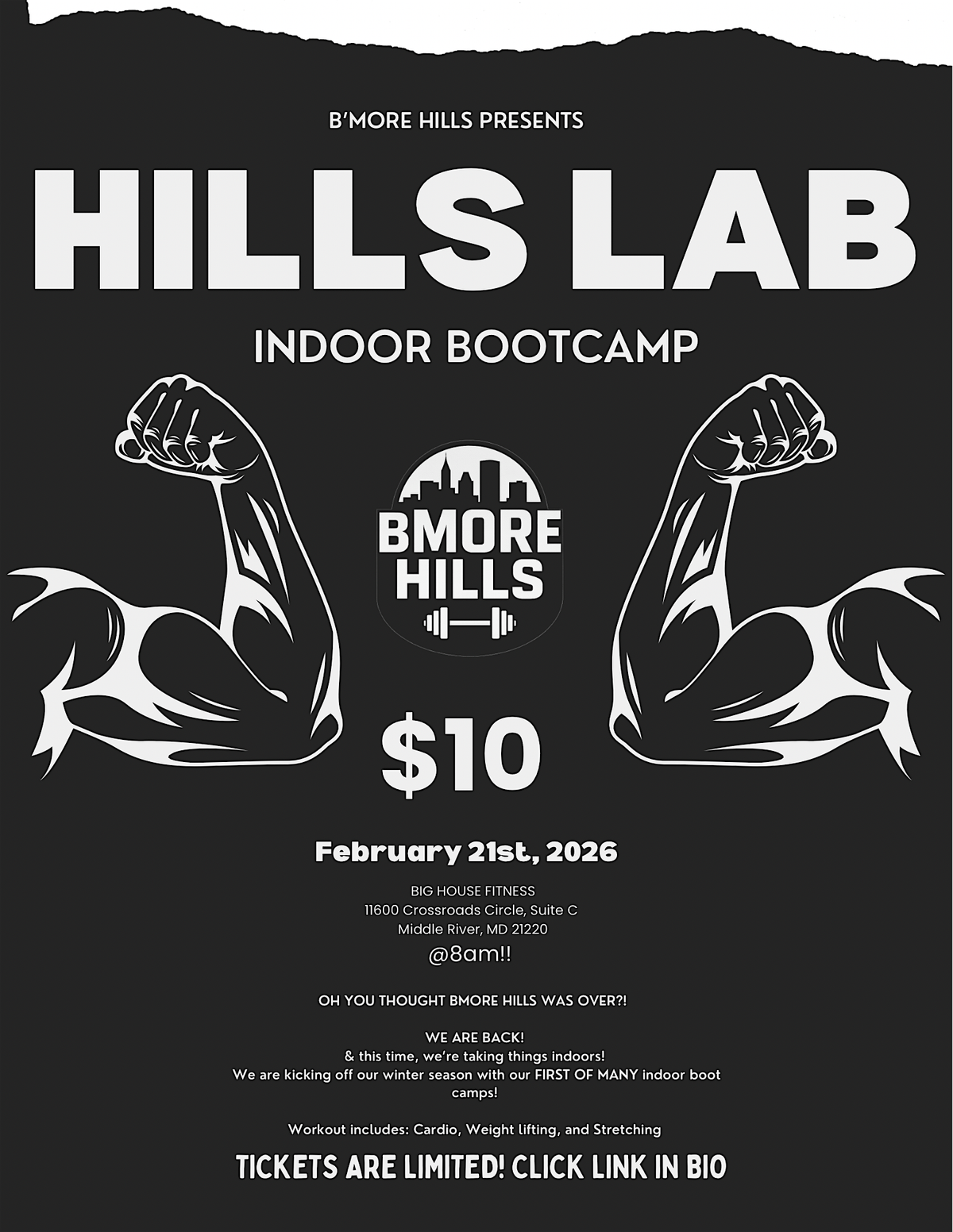 Join us at HILLS LAB for a fitness bootcamp that will leave you sweating and smiling all day long! Strength training, core, and cardio focus