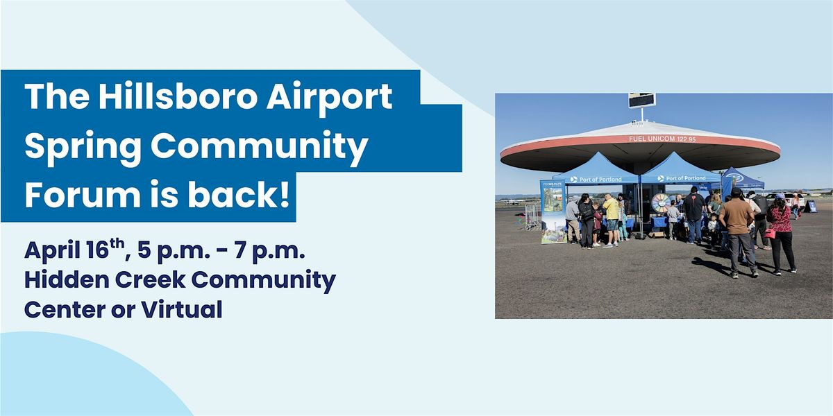 The forum is an opportunity to hear updates and share your perspective with the Port of Portland. Weβll provide airport updates, share information about upcoming projects, and discuss whatβs ahead for the Hillsboro Airport (HIO), including the Oregon Air Show, aircraft noise, and a brief update on our Unleaded Aviation Gas Transition efforts.
