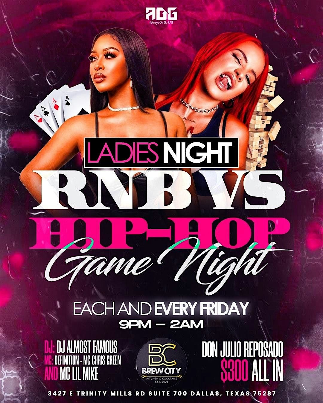 AOG Entertainment Presents Ladies Night + Hip Hop Vs R&B Game Night