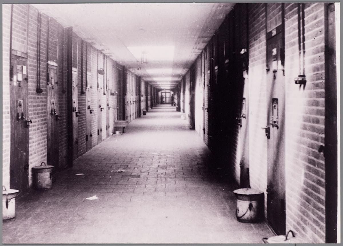 Foto: Cellengang in het Oranjehotel, 1946
