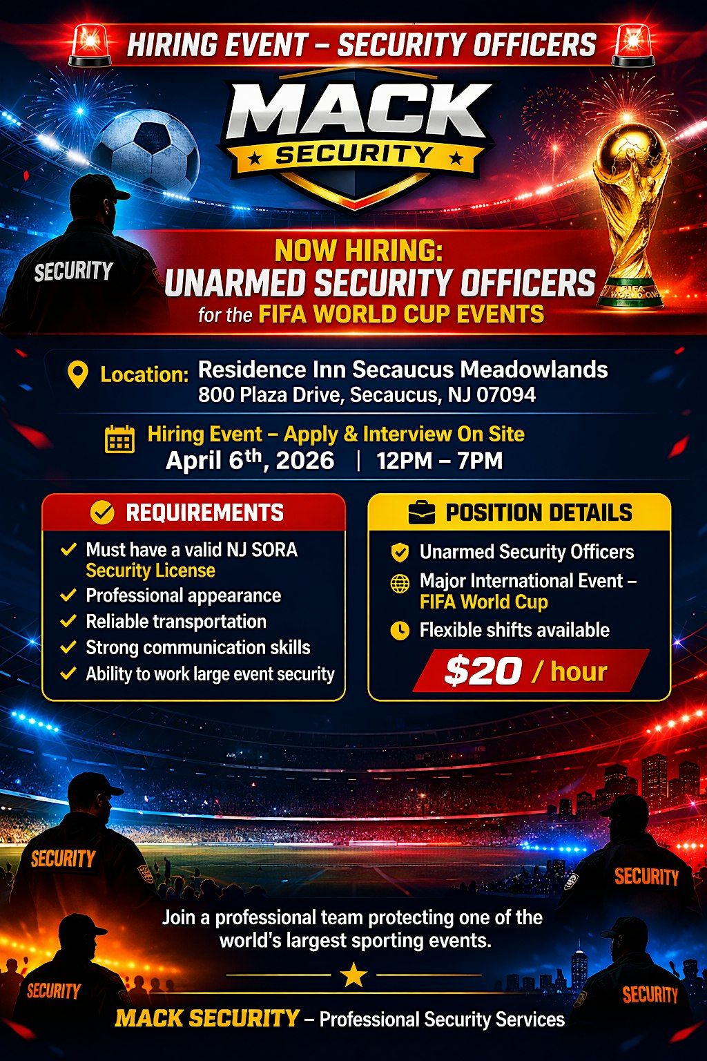 Hiring Event - NJ Sora Security Officers for FIFA Events