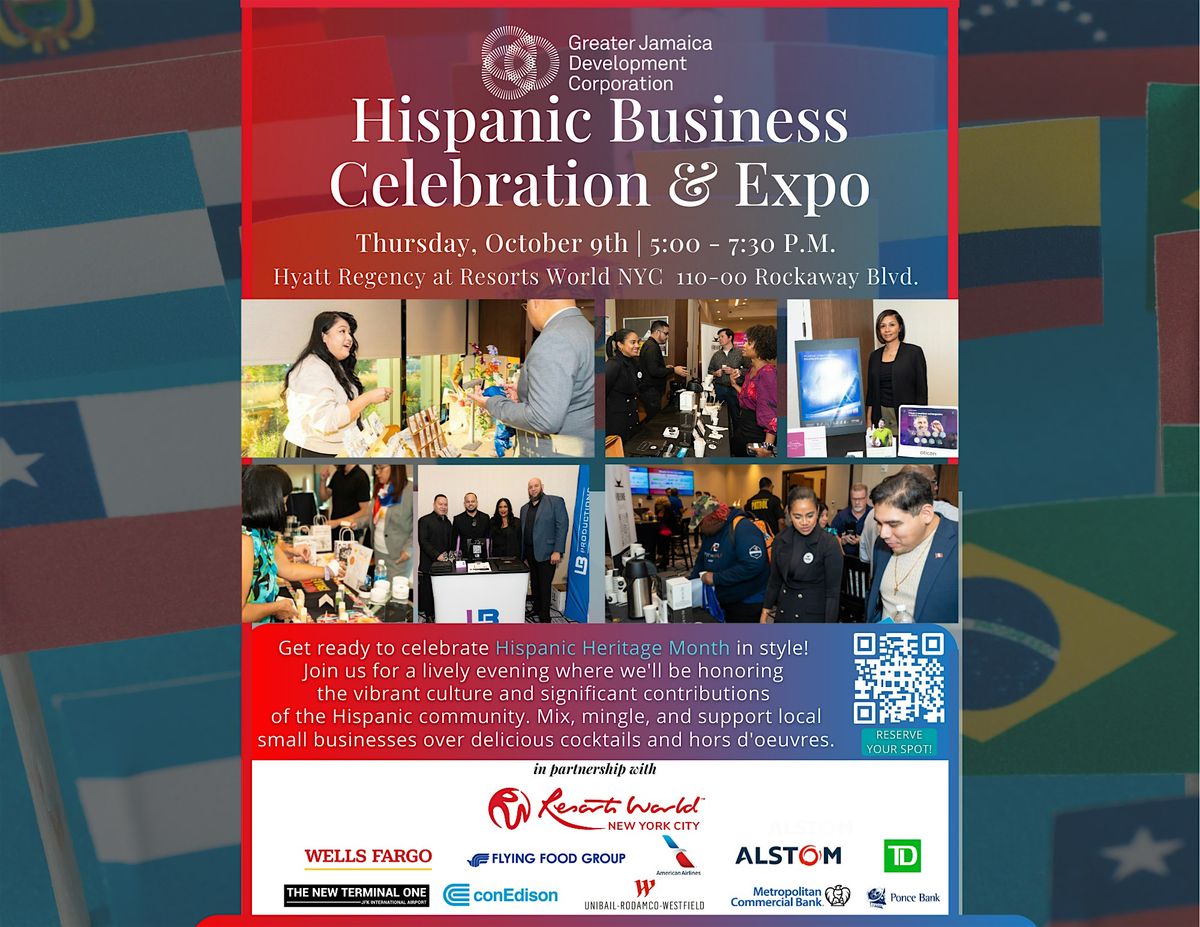Join us at the Hyatt Regency JFK Airport at Resorts World New York for an exciting event honoring Hispanic Heritage Month. This is a fantastic opportunity to celebrate the vibrant culture and impactful contributions of Hispanic entrepreneurs in our community. Come out & enjoy cocktails and hors d'oeuvres while connecting with and supporting local small businesses. ¡Esperamos verte para celebrar!