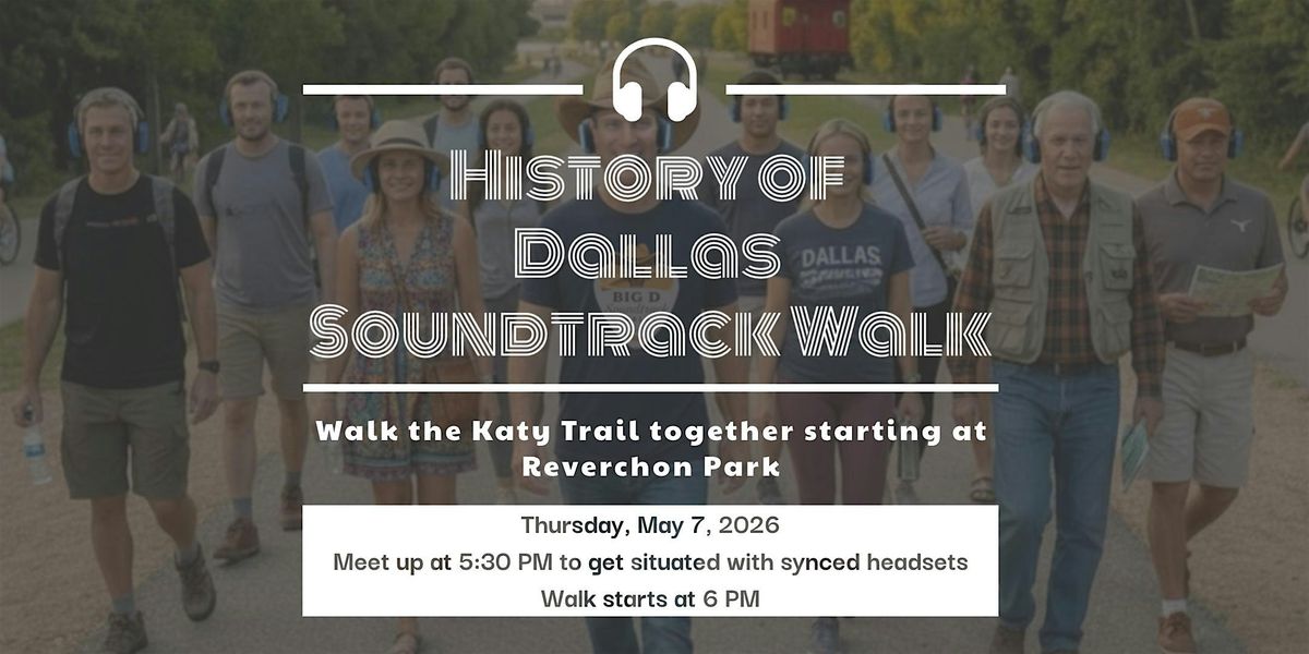 As we walk 1.5 miles along the Katy Trail, you’ll hear the soundtrack of Dallas come alive—featuring legendary artists like Post Malone, Kelly Clarkson, and The Chicks—along with a curated mix of hits, hidden gems, and surprising stories tied to the Big D.