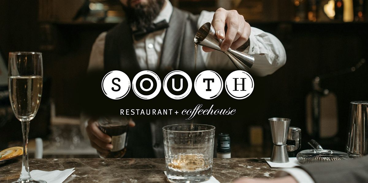 Come join us at South Restaurant + Coffeehouse for a fascinating evening filled with mixology magic! Our talented bar manager, Trey Sanford, will guide you through the history of crafting delicious cocktails from post war - modern day.