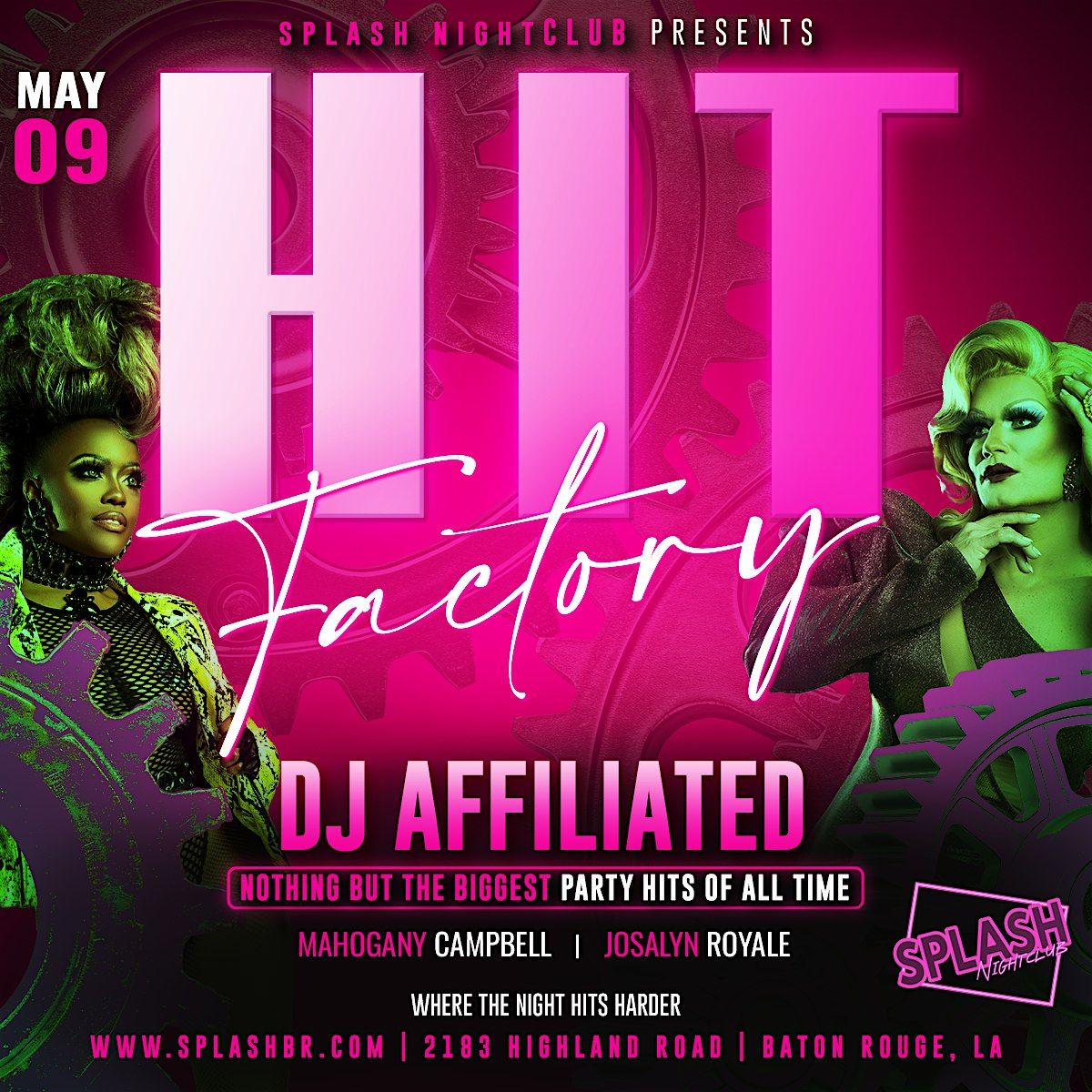 Hit Factory takes over Splash with DJ Affiliated spinning the biggest party anthems of all time—back to back, no skips, no slow moments 💃✨