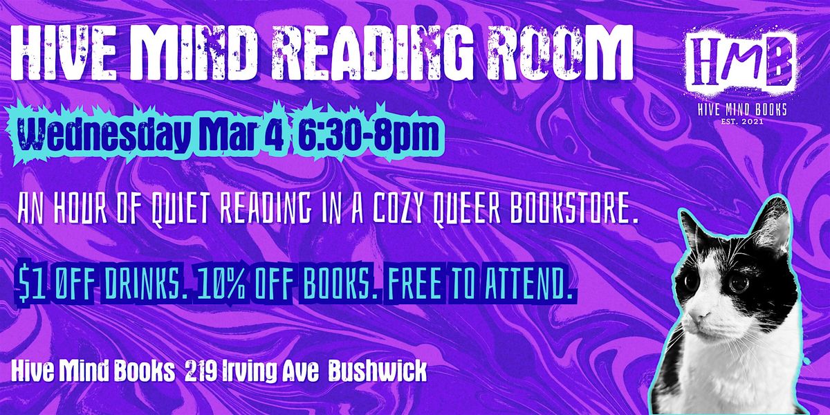 Do you wish you had more time to read? BYOB (bring your own book) to Hive Mind Books in Bushwick for an hour of quiet reading time in our cozy bookstore!