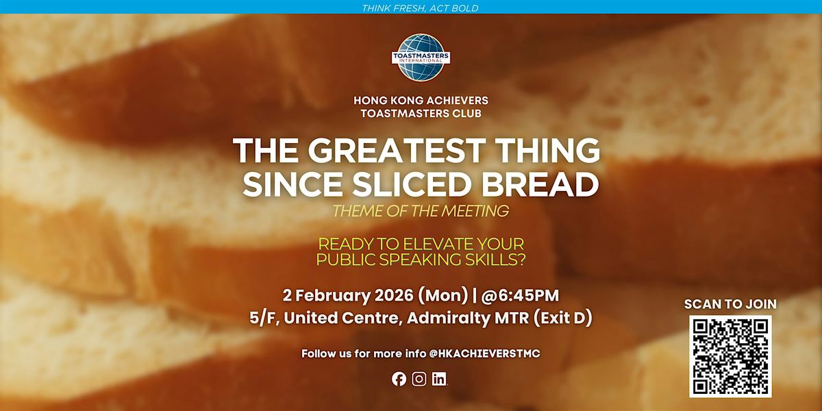Join us this Monday at Hong Kong Achievers Toastmasters Club as we explore what makes something truly great from powerful words to creative expression, and how each of us can bring our own “slice” of brilliance to the stage.