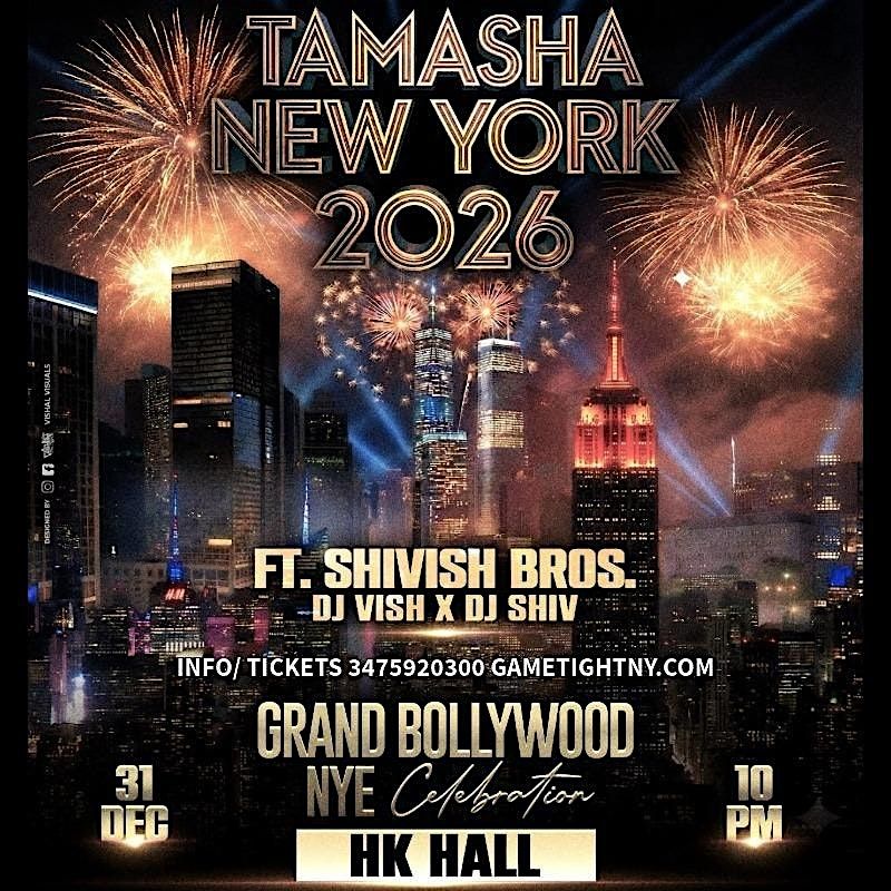For more information/ tickets/ birthdays at HK Hall Bollywood Sufi New Year’s Eve 2026 call/ text 3475920300 or log onto Gametightny.com
