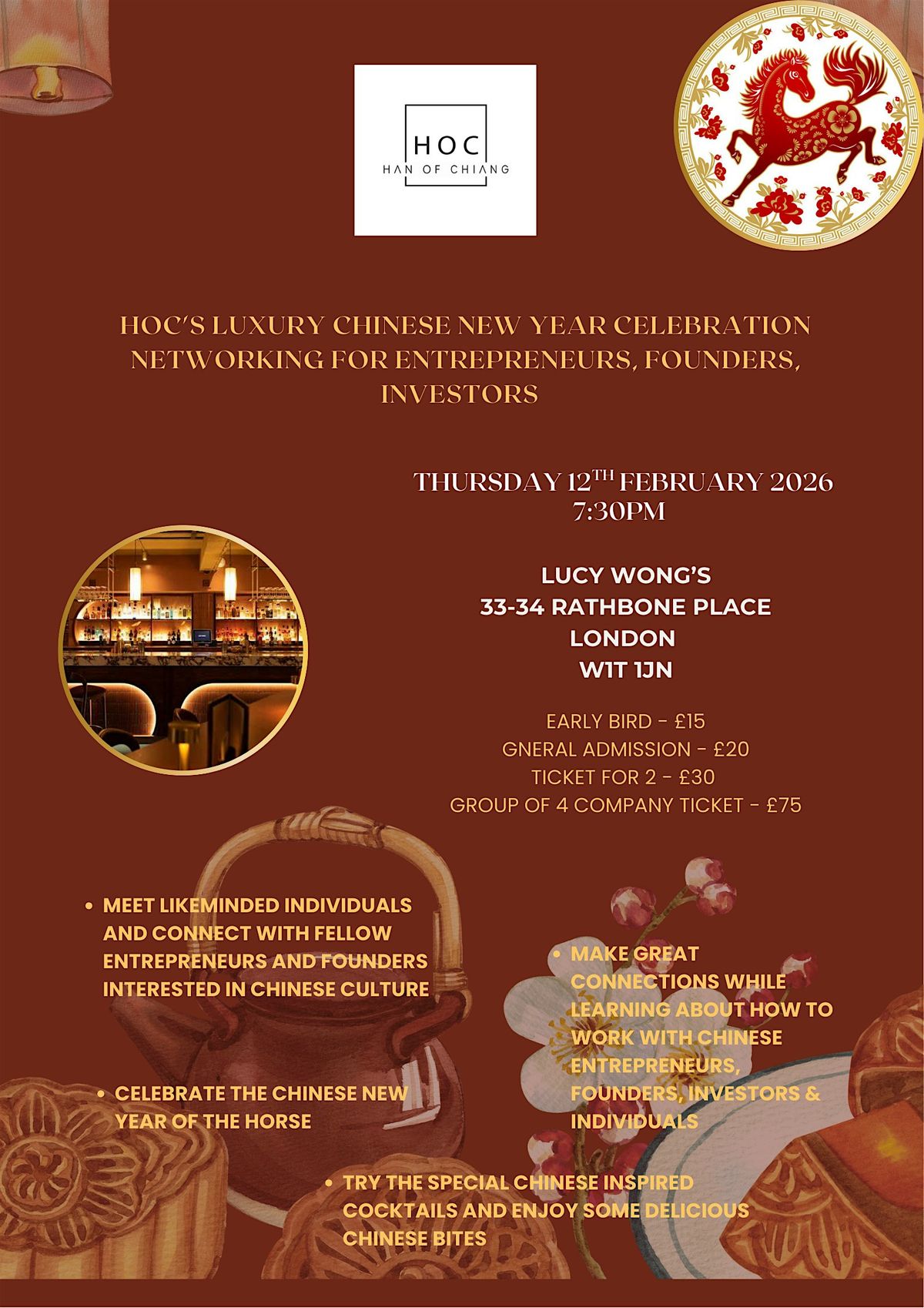 HOC CONSULTING LTD is extremely excited to invite you all to a very unique Chinese networking to celebrate Chinese new year as we welcome the year of the Horse!