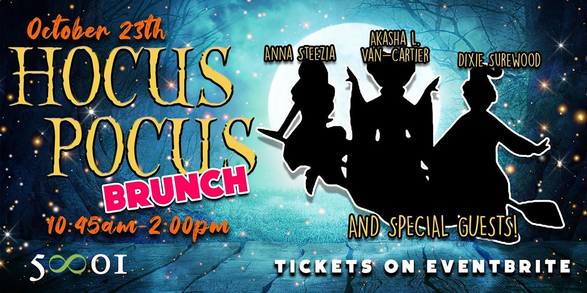 This isn't your typical brunch... it's time to sissy that walk down to 5801 for our VERY SPECIAL Hocus Pocus Drag Brunch! Join us as our queens resurrect everyone's 3 favorite witches. Be sure to get your tickets today, because these girls only have so long! Our first event SOLD OUT in less than 3 minutes. Get yours while you can!