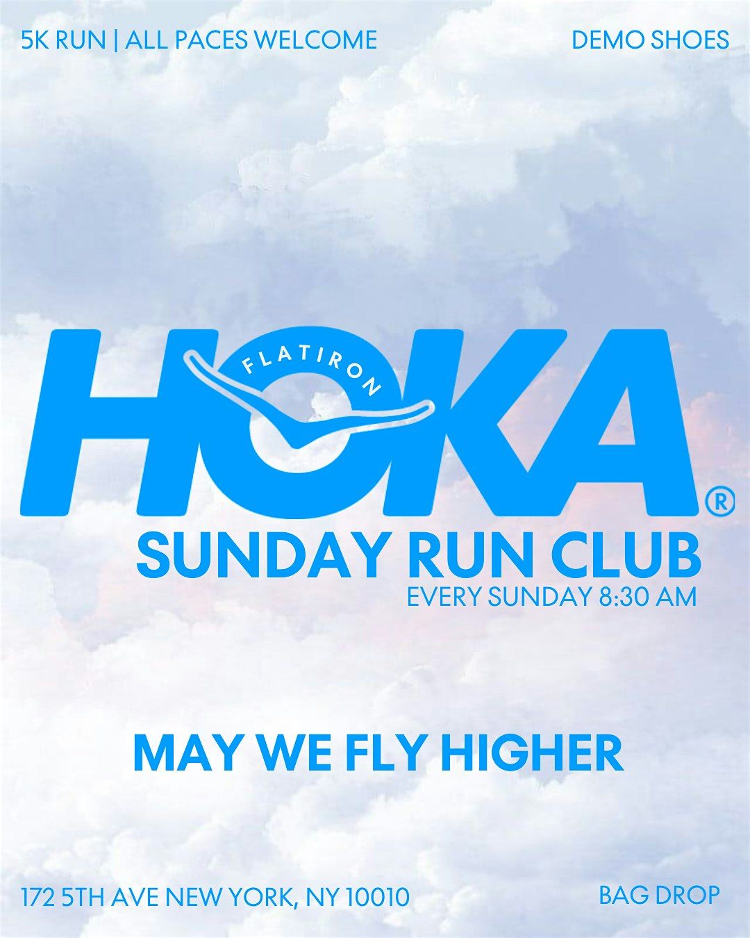 MAY WE FLY HIGHER. 🪽Sundays we soar. See you at 8:30 AM.Powered by HOKA, fueled by community 💙