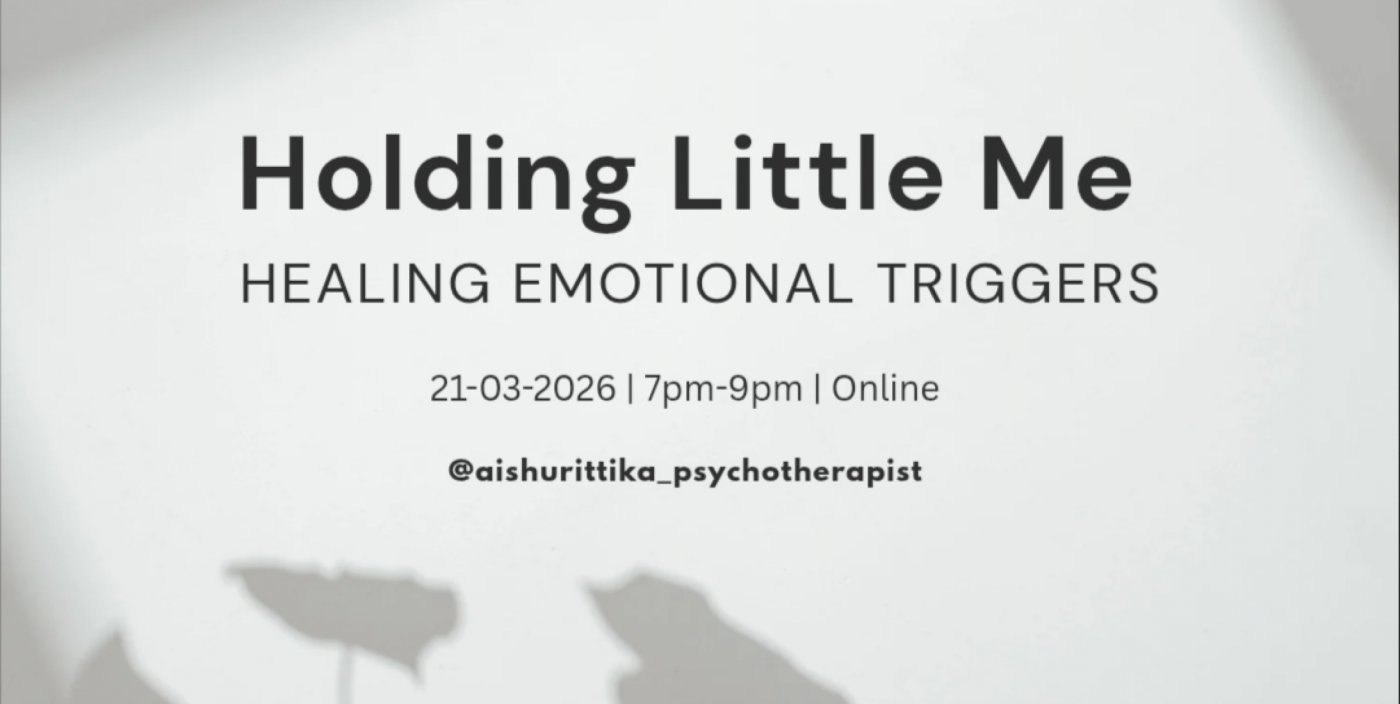 Step into a transformative journey at "Holding Little Me: Healing Emotional Triggers" hosted by Aishu Rittika, a renowned counseling psychologist dedicated to guiding individuals towards self-healing.