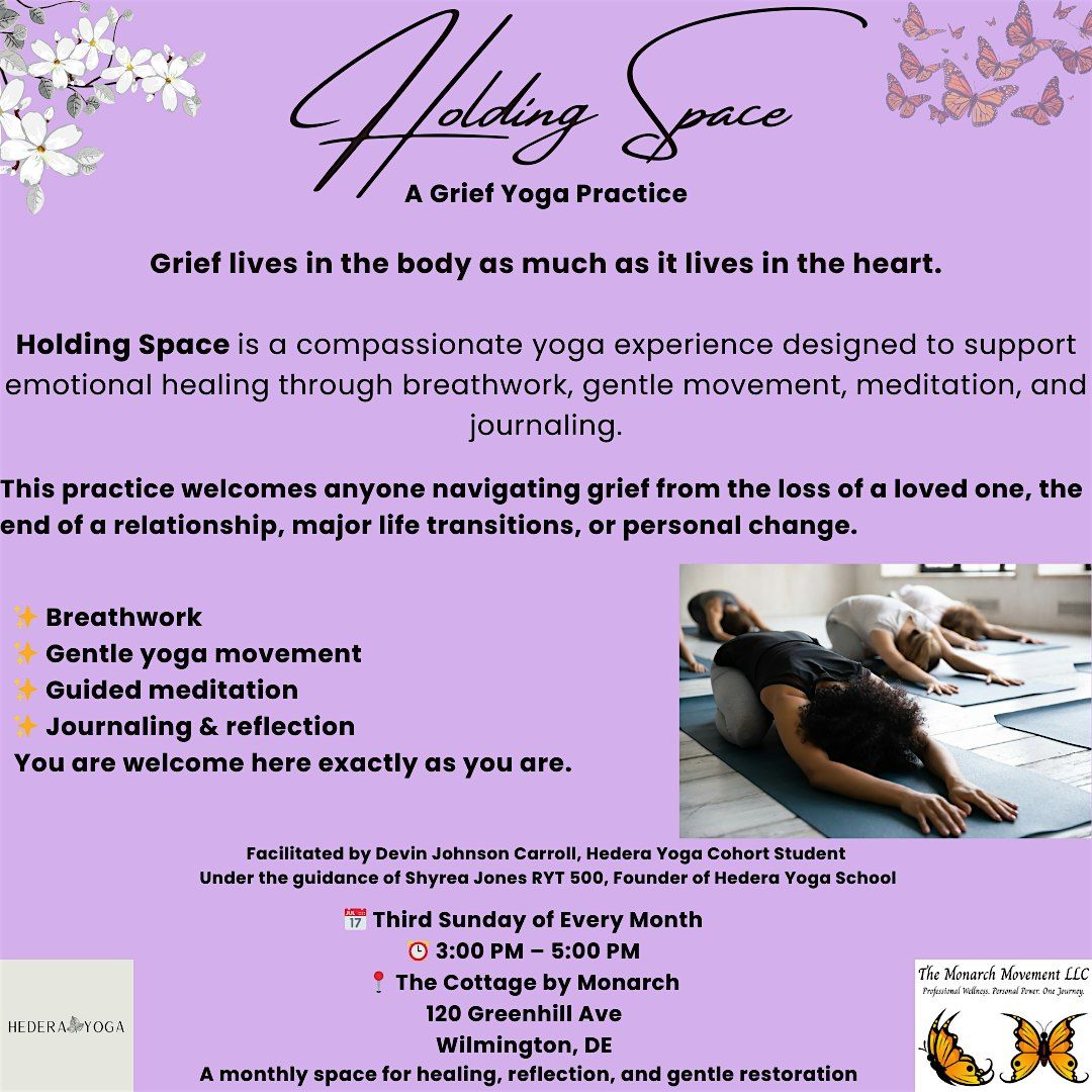 Holding Space is a trauma-informed yoga experience designed to create a supportive environment for those navigating grief, loss, and major life transitions.