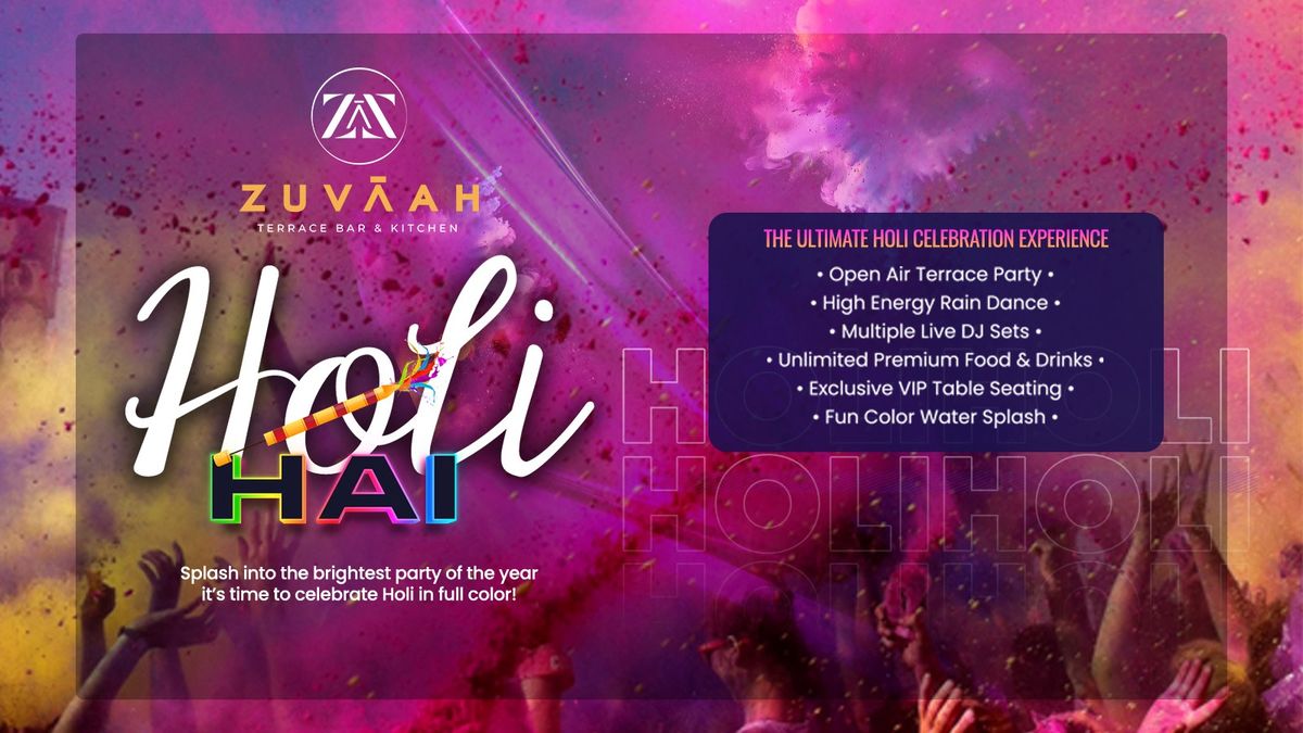 Get ready to turn up the madness because HOLI HAI is coming to ZUVAAH this 4th March! 🌈🔥This Holi, we’re bringing you the ultimate open-terrace celebration filled with colors, music, and non-stop vibes.✨ Unlimited Premium Drinks & Food Packages💦 High-Energy Rain Dance Setup🎨 Colors Flying All Around🎧 Multiple Artist Performances🌟 Exclusive VIP Entries & Experiences🌇 Massive Open Terrace CelebrationDance under the sky, get drenched in colors, sip on premium pours, and celebrate the festival of joy like never before.This isn’t just a party… it’s a full-power Holi experience.Because when it’s HOLI HAI… it has to be legendary! 🎉🌈