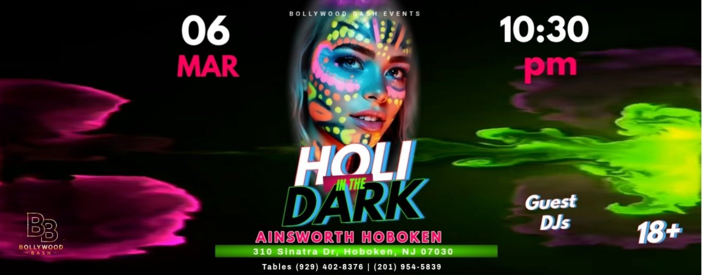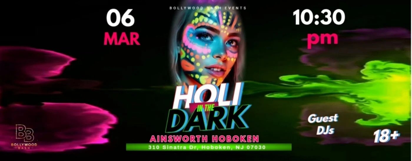 Come join us at the biggest Holi Party in New Jersey at The Ainsworth Hoboken! Let's create the festive atmosphere for this wonderful custom of Holi with neon colors, face & body paint, glow sticks and much more!