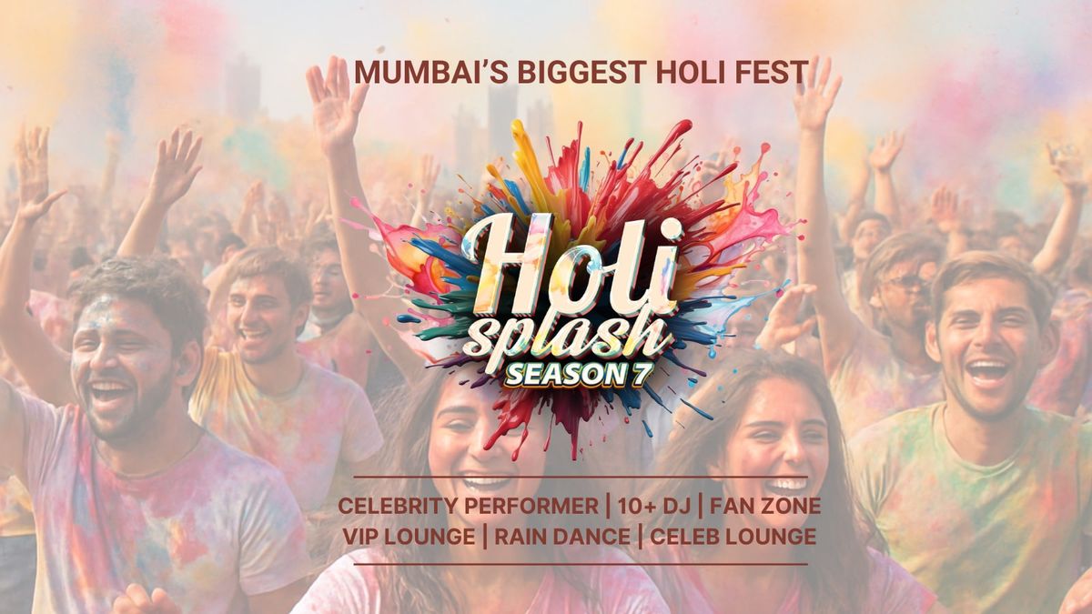 Get Ready for Mumbai’s Biggest Holi Fest – Holi Splash 2026! 🎉 Join us for the Season 7 of Mumbai’s most vibrant Holi festival, where colors come alive, music fills the air, and joy knows no bounds! 🎤 What to Expect:- Artist Lineup: A sensational Bollywood artist (to be announced) alongside 8 celebrity DJs spinning electrifying tracks. - Rain Dance: Groove to the beats while the rain showers amplify the excitement. - Dhol Beats: Experience the thunderous rhythms of Punjabi and Puneri Dhol, bringing tradition to life. - Colour Blasts: Dive into organic, skin-safe colors and celebrate the true spirit of Holi. - Food & Beverages: Indulge in a variety of delicious eats, refreshing thandai, and beverages. - Exclusive Fan Zone & VIP Sections: Enjoy premium perks and unforgettable experiences. - Kid-Friendly Zone: A special space for the little ones with fun activities and entertainment. 💃 Come with friends and family, and make memories to last a lifetime at Holi Splash 2026. Let’s paint the city with happiness, laughter, and the vibrant colors of life!