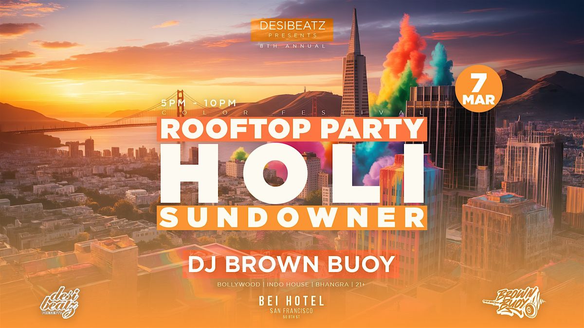 Celebrate the festival of colors in true style at the BEI Hotel rooftop in San Francisco from 5:00 PM to 9:30 PM. We’re bringing you DJ Brown Buoy with a vibrant mix of Bollywood, Bhangra, and Indo House beats that’ll keep you dancing as the sun goes down.