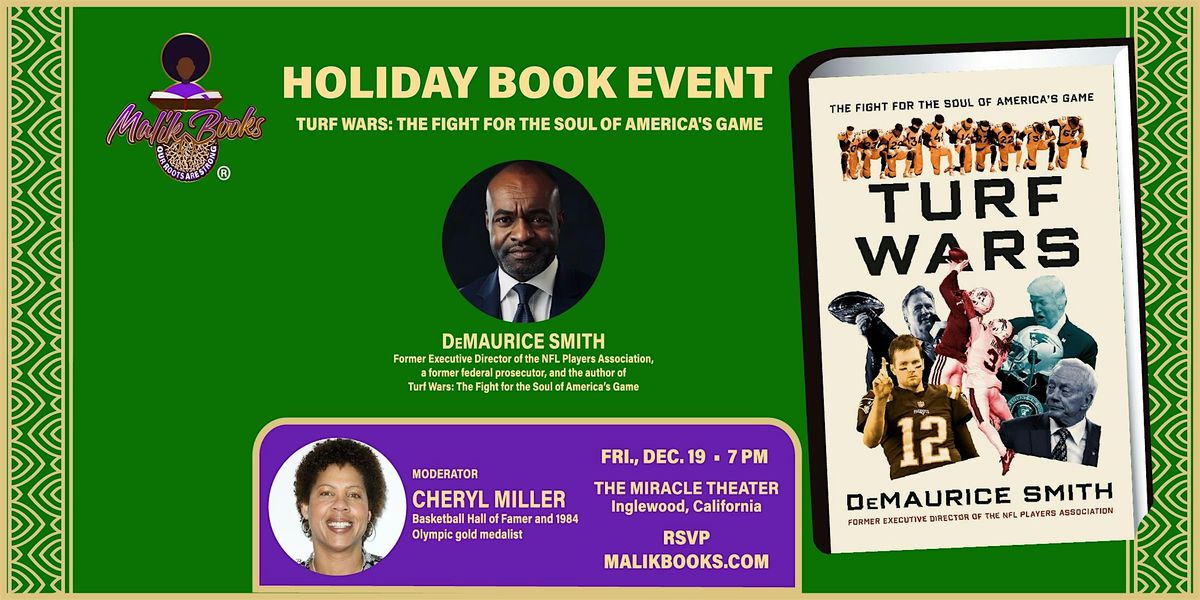 On Friday, December 19th at 7 PM, at the Miracle Theater, come experience the Holiday Book Event for Turf Wars: The Fight for the Soul of America's Game, written by DeMaurice Smith — Former Executive Director of the NFL Players Association, former federal prosecutor, and acclaimed author.