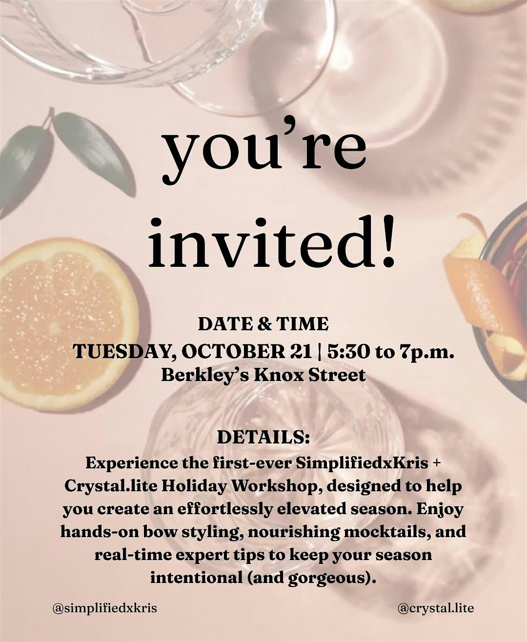 This isn’t another Pinterest fail waiting to happen. It’s the first-ever SimplifiedxKris + Crystal.Lite Holiday Workshop, where we’re showing you how to make your home look elevated (and your energy optimized) with half the effort and all the impact.