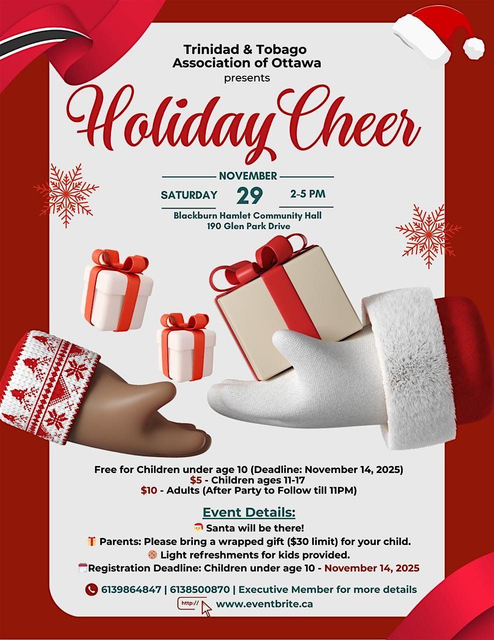 Join the Trinidad & Tobago Association of Ottawa on Sat. Nov 29, 2β5 PM at Blackburn Hamlet Community Hall for an afternoon of festive fun, light refreshments, and a visit from Santa π !