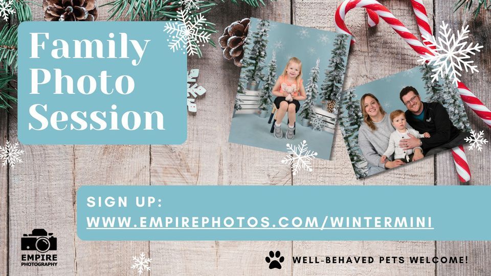 Need a family photo for your holiday card? Empire Photography is hosting mini family photo sessions! Bring your children or your fur-babies for a 15 minute winter-themed photo session.Sign up using this link: www.empirephotos.com/wintermini