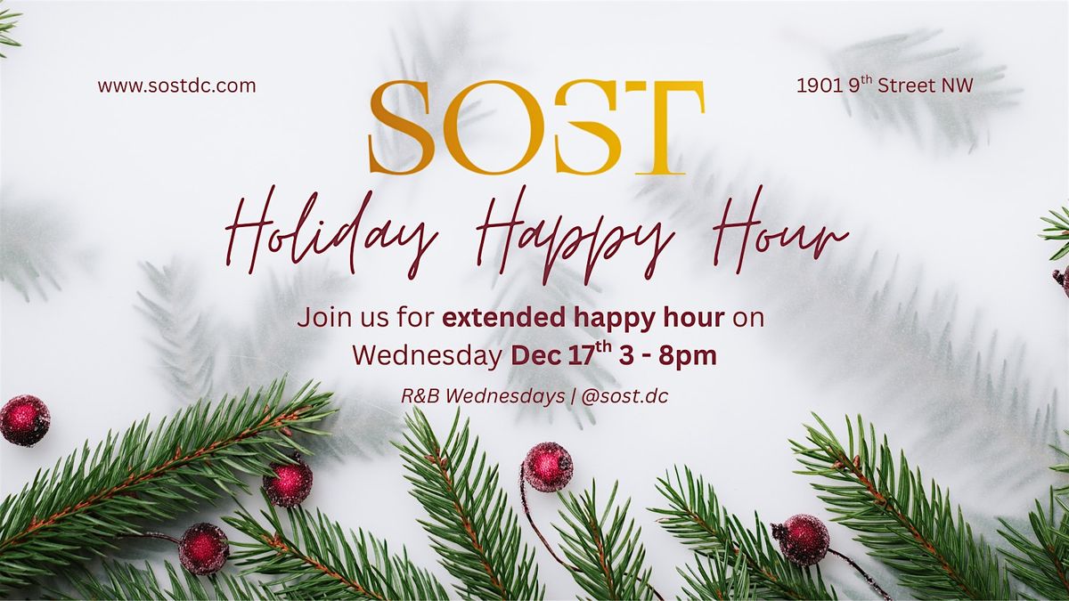 Welcome to the Holiday Happy Hour at SOST! Join us on December 17, 2025 at 3:00 PM for a festive celebration. Let's toast to the season with friends and colleagues in a cozy atmosphere.