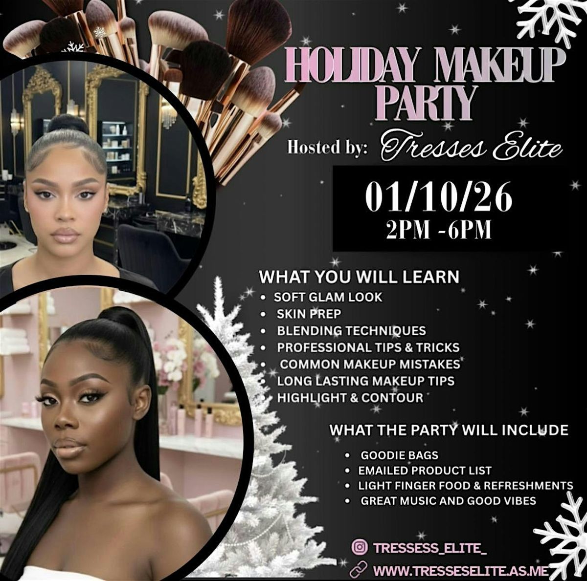 Join us this holiday season to learn how to step up your appearance ! Whether you're looking to glam up for the season or you want to learn how to create an easy everyday makeup routine, this is the place to be. Bring your favorite products or just show up ready to learn and vibe. There will be refreshments, good music and great people so get dressed up and come learn how to activate your 2026 glow-up!!!!