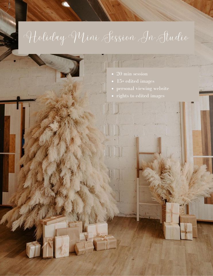 These in studio holiday minis will have a pampas gras tree and neutral holiday setup. There are also so other spots in the studio space that can be decorated holiday-ish or neutral.