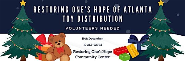 Restoring One’s Hope of Atlanta, Inc. (ROHA) is looking for dedicated volunteers to support our upcoming Holiday Toy Distribution at our community center. Your time and service help us bring joy, dignity, and hope to families during the holiday season.