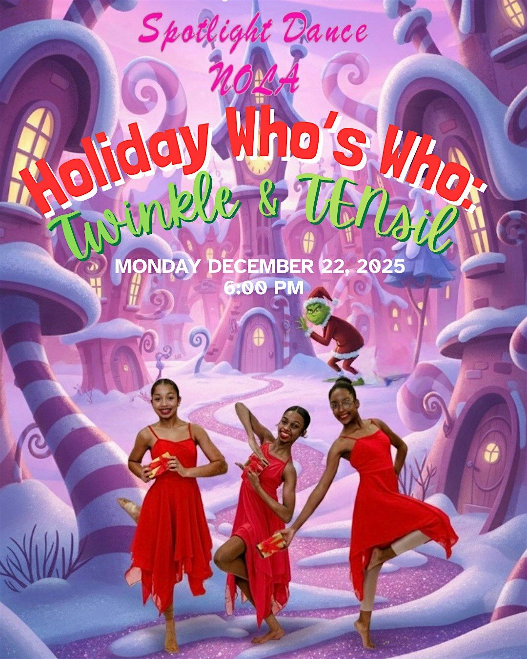 Want to know the who's who of Holidays? Join us at Spotlight Dance NOLA on December 22, 2025 at 6:00 PM (Central Time) for a festive celebration. Get ready for some holiday cheer with friends and family.