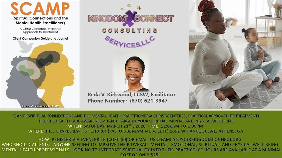 Looking to boost your overall well-being? This in-person workshop dives into all things holistic health — mind, body and spirit with our innovative treatment approach-SCAMP (Spiritual Connections and the Mental Health Practitioner-A Christ Centered, Practical Approach to Treatment)! Meet like-minded folks, learn practical tips, and discover helpful ways to feel your best and become the best version of yourself. It will be casual, engaging and super informative. Don't miss out on this chance to take better charge of your health!