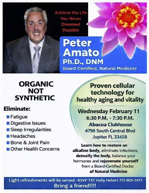 Join us for an engaging discussion on Healthy Aging & Vitality at the Abacoa Clubhouse. Learn valuable tips and insights to enhance your well-being at the cellular level.