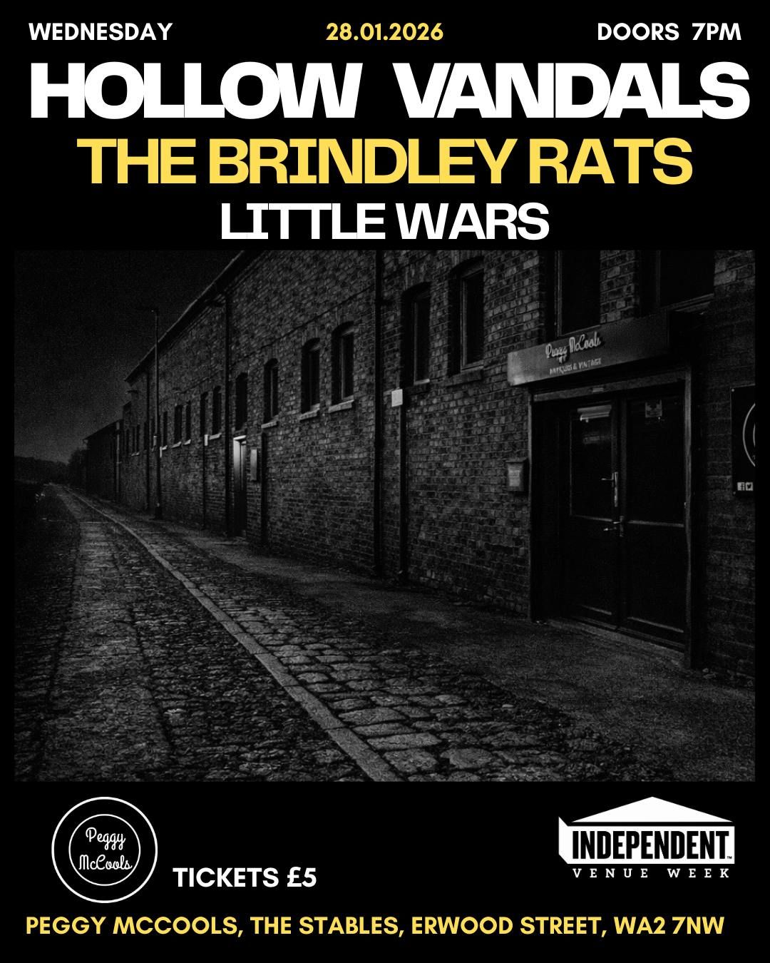 Warrington band Hollow vandals headline this independent venue week gig with support from The Brindley rats and Little wars.