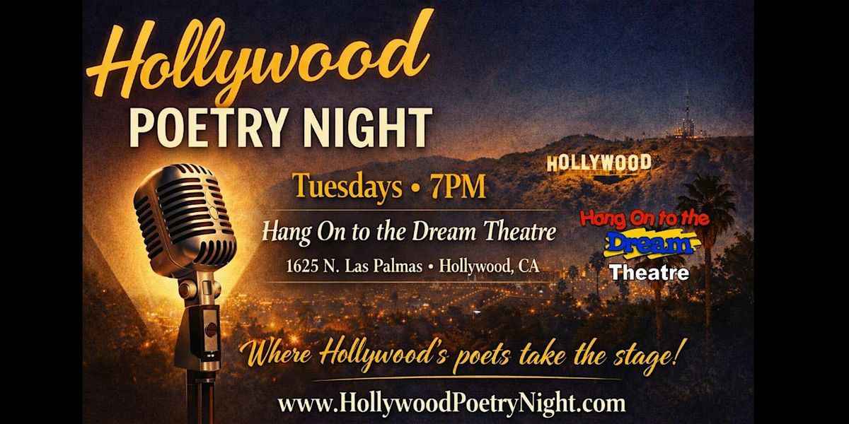 Join us Tuesdays at 7pm at the Hang On to the Dream Theatre for "Hollywood Poetry Night", a weekly curated showcase featuring original voices from across Los Angeles.