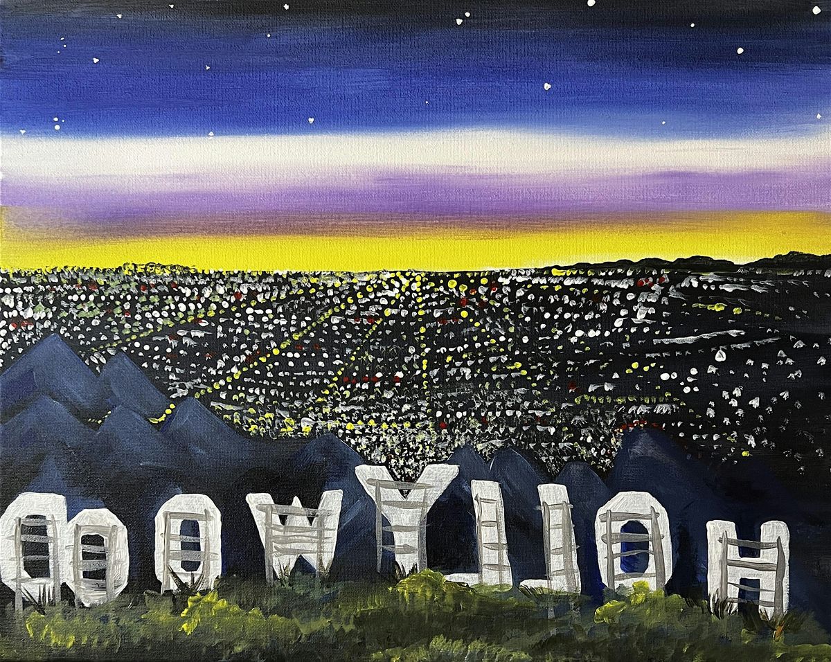 Sip on your favorite drink while following step-by-step instructions to create a Hollywood sign masterpiece. No painting experience? No problem! Our instructor will guide you through the process, ensuring a fun and stress-free experience for all skill levels.