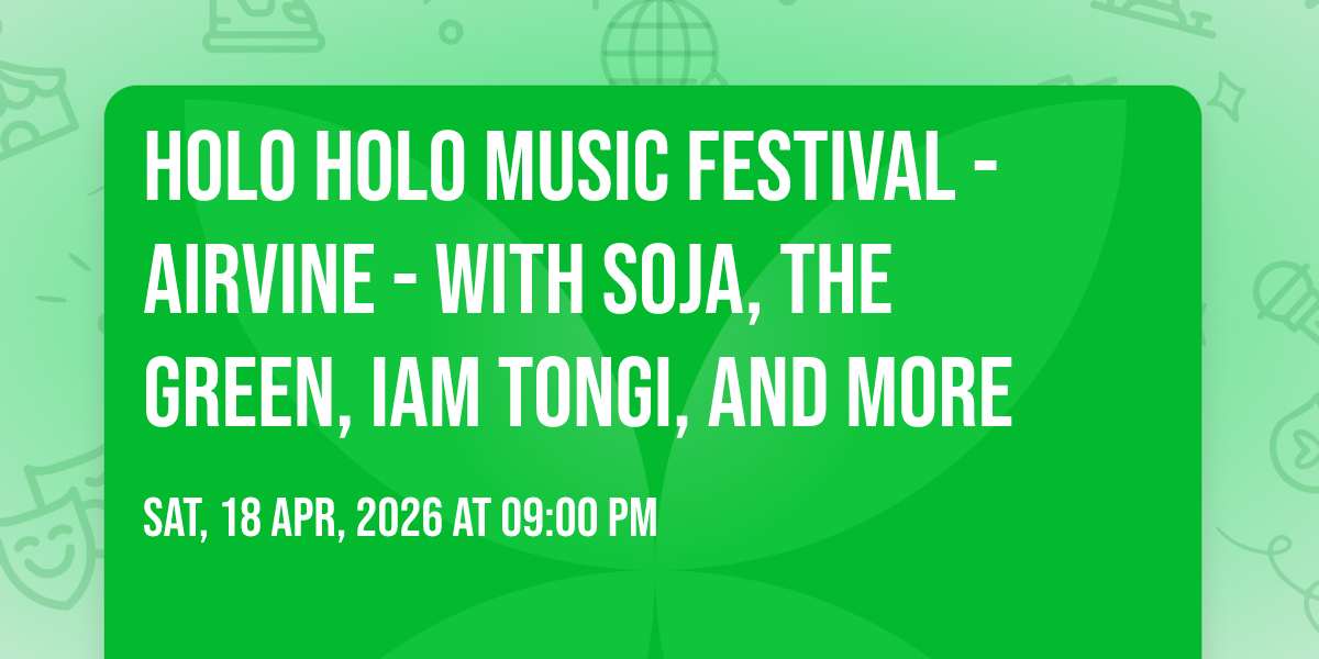 π Location: 33.6846, -117.827π Be part of history at Holo Holo Music Festival - AIrvine - with Soja, The Green, Iam Tongi, and more, an extraordinary gathering that will captivate your imagination! ποΈ The prestigious Great Park Live in Irvine, CA sets the stage for an unforgettable experience on April 18th, 2026 at 09:00 PM. β¨ They are bringing together the finest elements of entertainment and innovation to create moments that will take your breath away. From the moment you arrive, you'll be immersed in an atmosphere of wonder and excitement. π― This carefully planned event ensures every guest experiences something truly special. π Early booking is recommended for this must-attend event of the season!