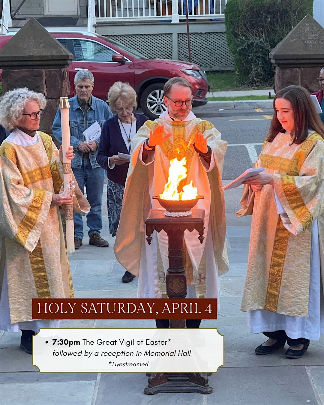 - 7:30pm The Great Vigil of Easter* followed by a reception in Memorial Hall