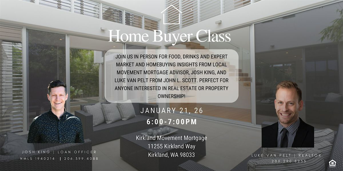 Join us in person for food, drinks and expert market and homebuying insights from local Movement Mortgage advisor, Josh king, and Luke Van Pelt from John L. Scott. Perfect for anyone interested in real estate or property ownership!