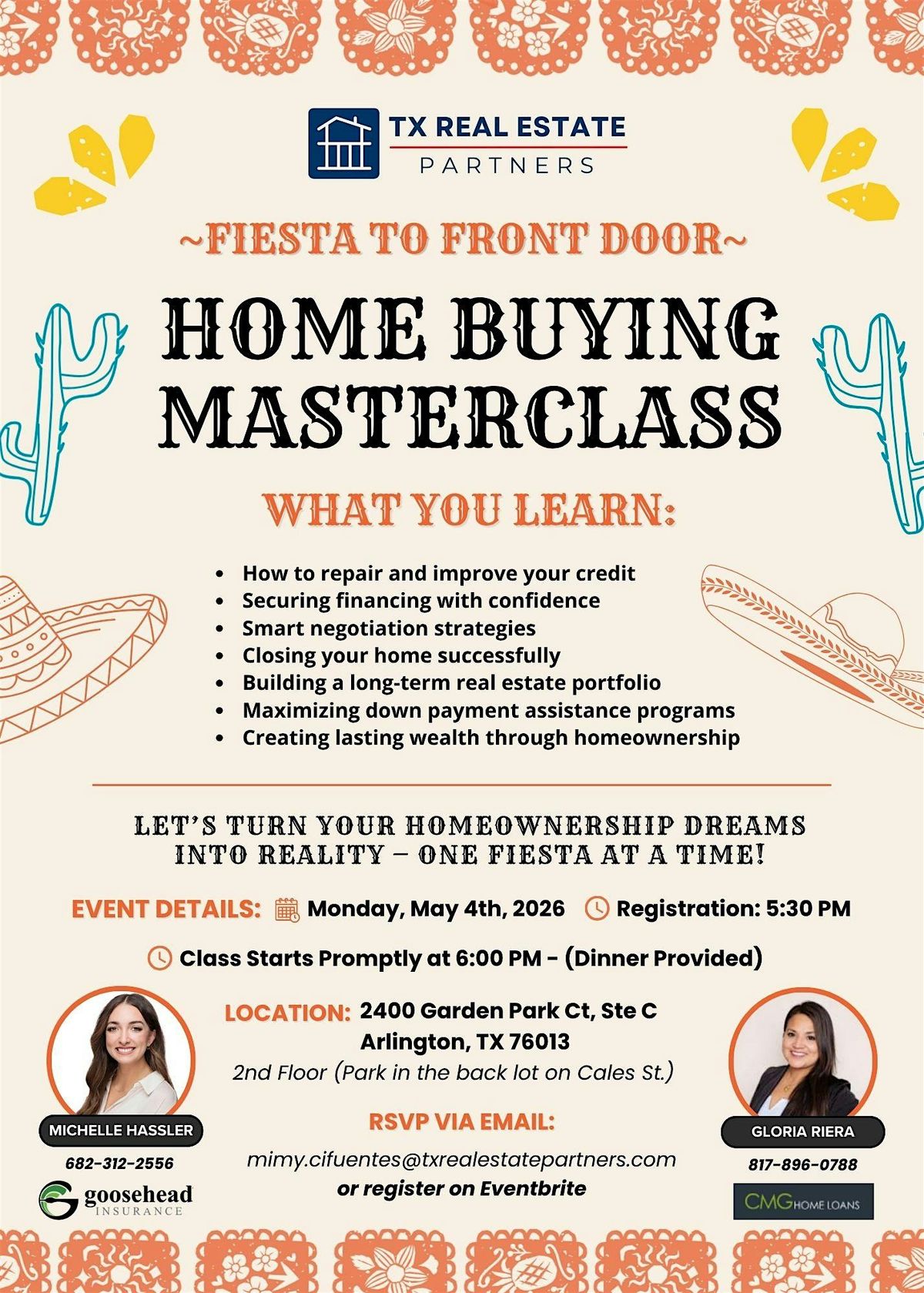 Home Buyer Master Class/Fiesta- Arlington TX| Workshop + Dinner (DFW)