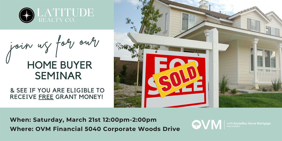 On Saturday, March 21st from 12:00pm-2:00PM, Latitude Realty, The Keeney Home Team & The OVM Financial Team is hosting a Home Buyer Seminar! This seminar will go over all of the steps it takes to successfully purchase a home... and see if you are eligible for FREE grant money!!