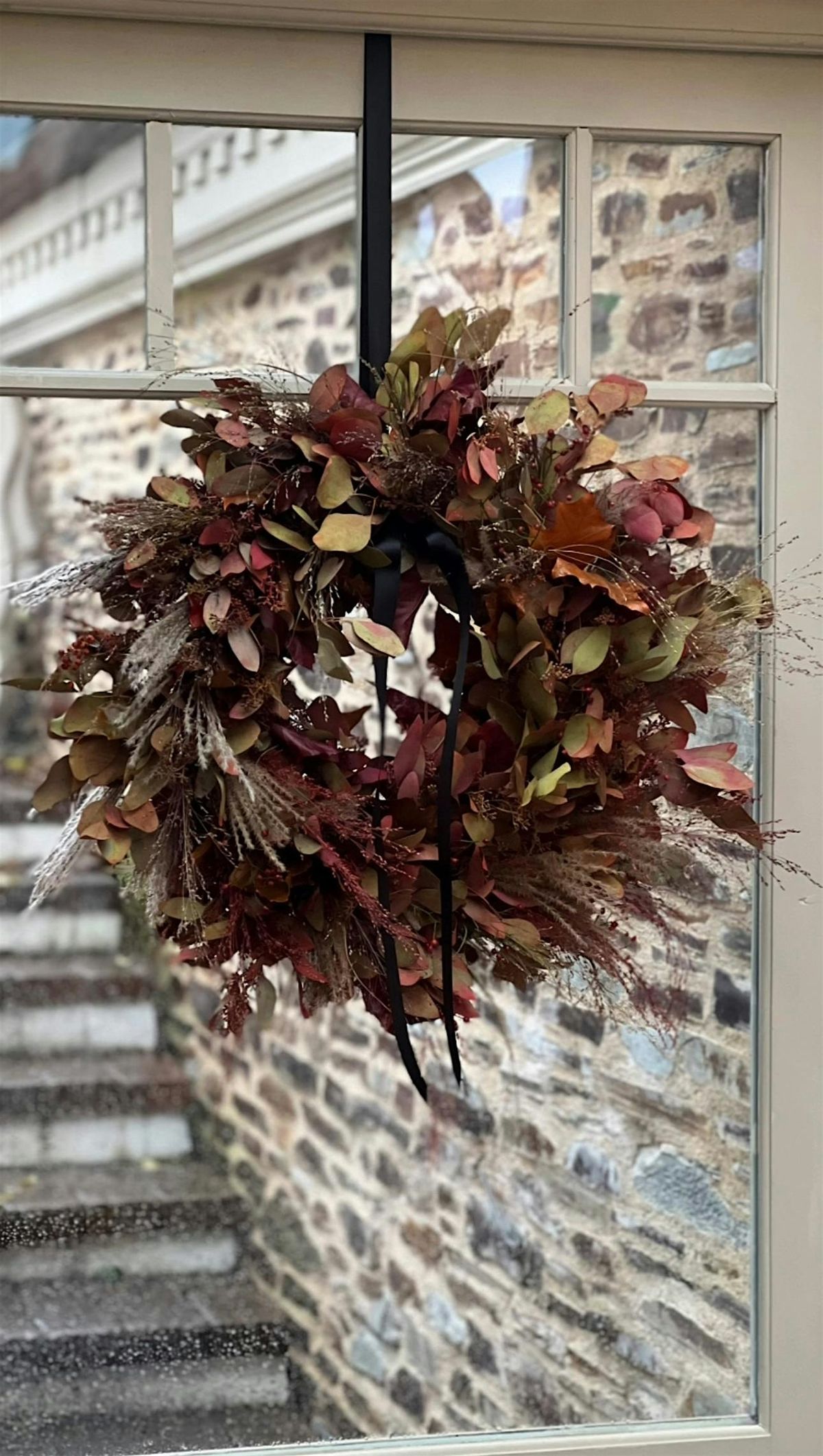 Led by a local floral artisan, each workshop will guide you through creating your own unique wreath using a stunning selection of seasonal foliage, dried flowers, seed pods, and textural elements, think eucalyptus, berries, wheat, and feathers, all sustainably sourced and beautifully rustic.