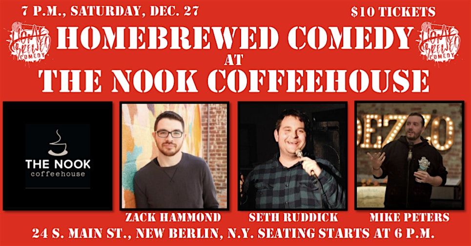 The laughter is coming to New Berlin when Homebrewed Comedy hits the stage at The Nook Coffeehouse on Saturday, Dec. 27. Zack Hmmond is headlining the show and Seth Ruddick is joining host Mike Peters.