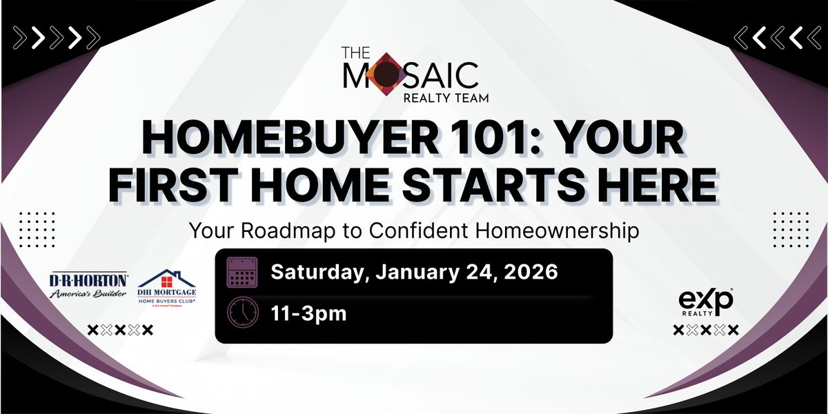 Join Mosaic Realty and D.R. Horton, America’s Builder, as we walk you step-by-step through the homebuying process and introduce you to the D.R. Horton Homebuyers Club—a powerful program designed to help buyers prepare, qualify, and succeed in today’s market.