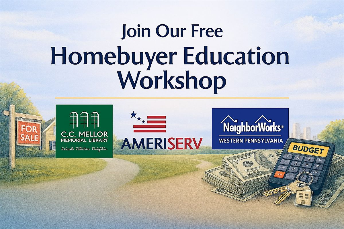 Join C.C. Mellor Memorial Library Forest Hills Branch, NeighborWorks Western Pennsylvania and Ameriserv for a FREE Homebuyer Workshop designed to guide participants through the homebuying process.