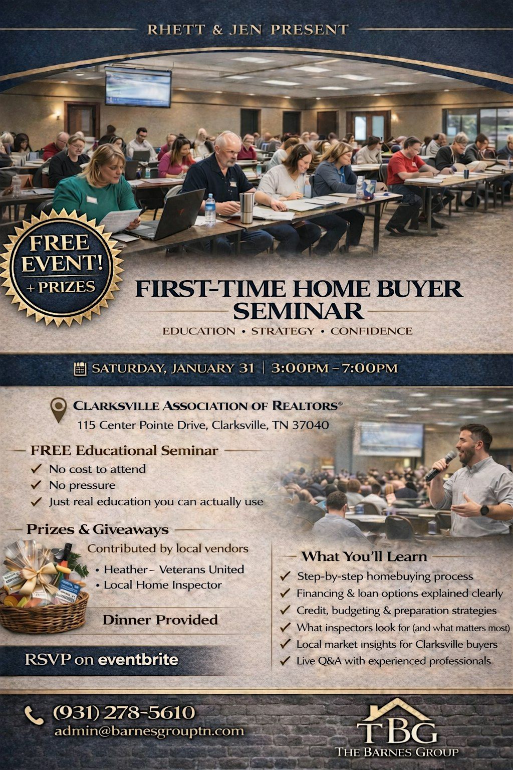 Buying your first home can feel overwhelming—but it doesn’t have to be. Our First-Time Homebuyer Seminar is a completely free educational event designed to help you understand the homebuying process from start to finish. Led by multiple experienced real estate professionals with over 20 years of combined experience, this seminar focuses on sharing knowledge, answering questions, and empowering buyers to make confident decisions.
