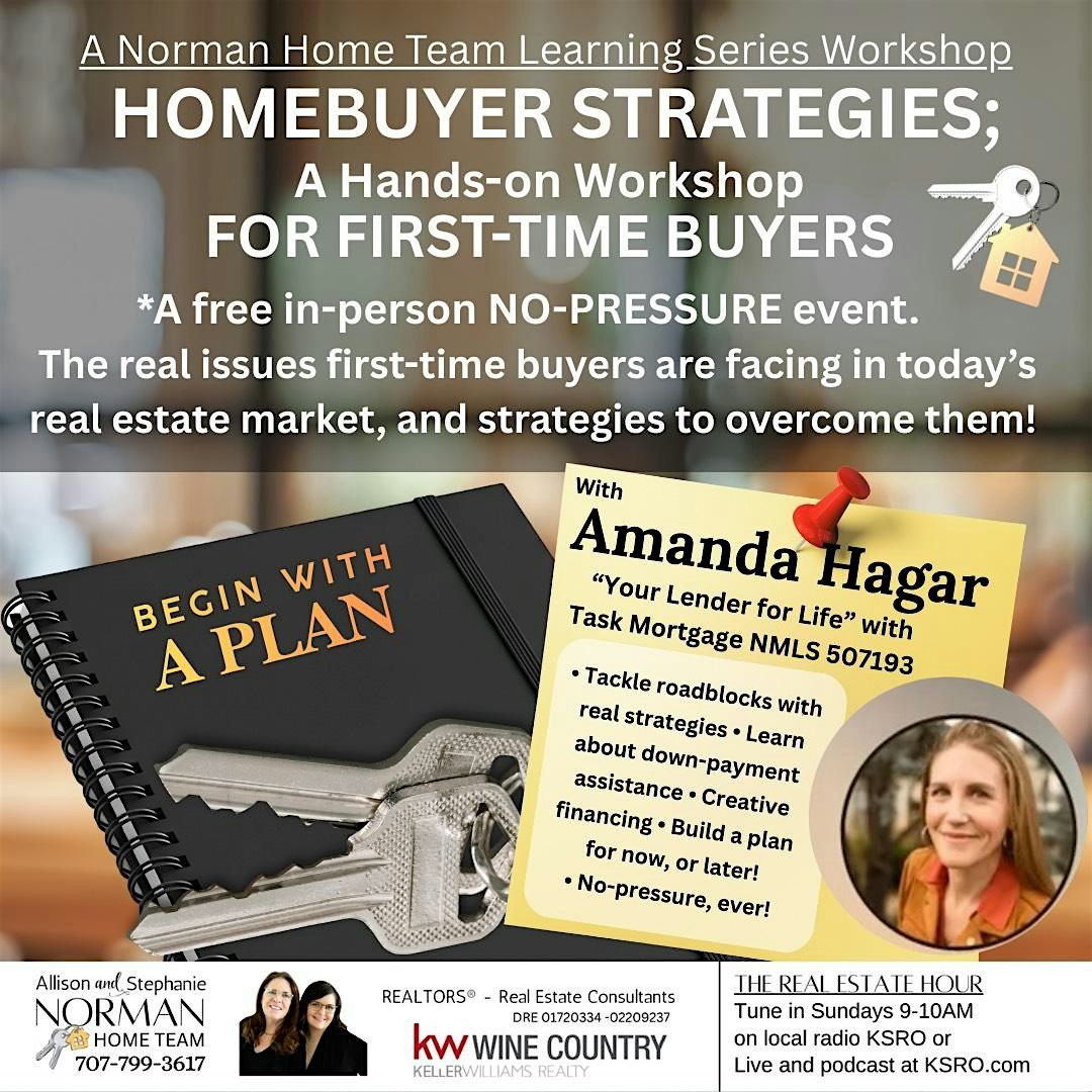 Join Realtors Allison and Stephanie Norman for another Norman Home Team Learning Series Workshop. Save yor seat for this free in-person event, or call/text for more details; 707-799-3617