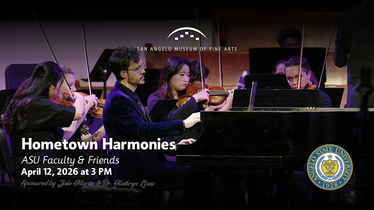 The San Angelo Museum of Fine Arts presents the Chamber Music Series featuring Hometown Harmonies with ASU Faculty & Friends, Sunday, April 12 from 3–5 PM in the Grand Hall of the museum.