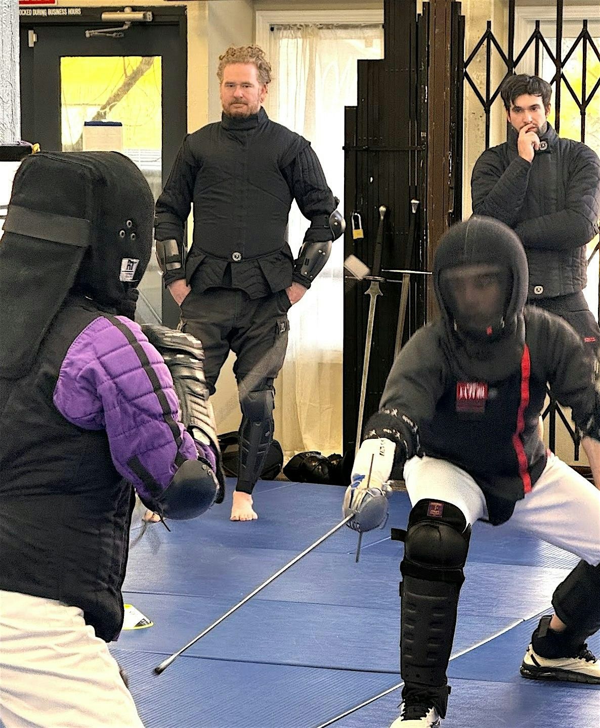 We provide all the gear. You just bring athletic clothes, water, and the willingness to say, “Yeah, I spent Saturday learning how to swordfight”.
