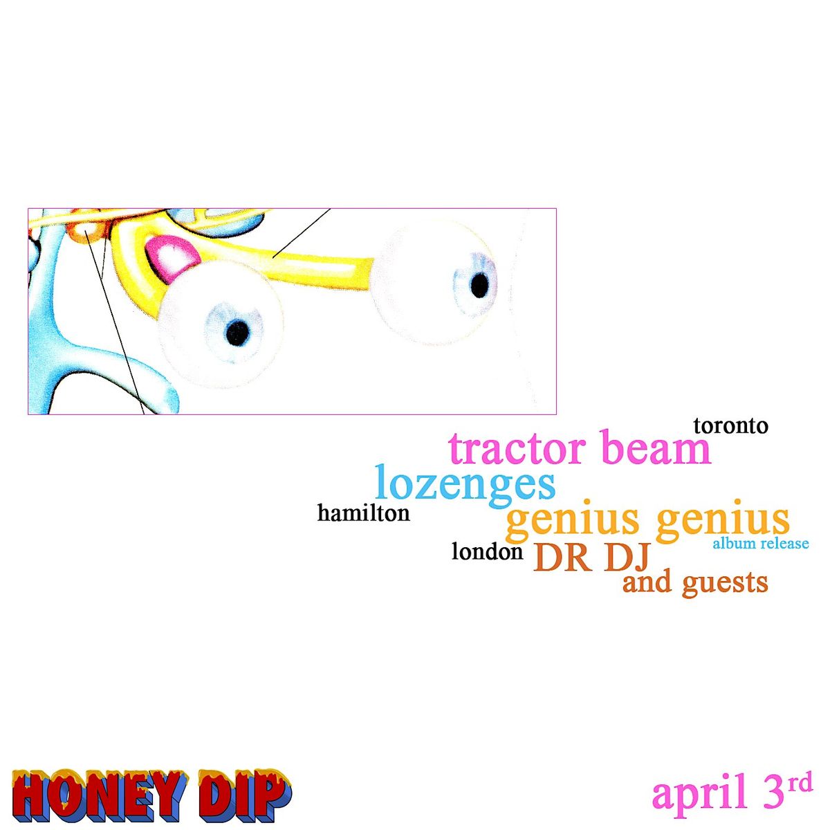 HONEY DIP april 3 (tractor beam, lozenges, genius genius, DR DJ)